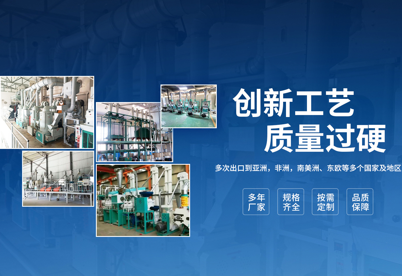 安陽市龍泰糧油機械有限公司是一個集糧油機械設計、生產制作、安裝于一體的設備制造商。公司坐落于農業生產基地河南省安陽市。多年來,公司與科研機構建立了廣泛的技術協作關系,精心致力于糧食加工設備的技術創新與應用,產品涵蓋整套碾米機械、小麥加工設備、玉米加工設備、雜糧加工設備,飼料加工及油脂設備等多個領域。可承接全套的交鑰匙工程,提供從資金預算,整體規劃,土建設計,設備制造、安裝、培訓,售后保障等一站式服務。 我公司擁有獨立自主進出口權及產品原產地注冊證書。產品除國內市場外,多次出口到,亞洲,非洲,南美洲、東歐等多個國家及地區。為國內外多家企業提供了工藝先進,技術過硬,節能的糧油設備,深得國內外客戶的一致好評。 公司以“質量就是生命”為宗旨,根據客戶不同需求,采用合理的技術方案,為客戶量身打造投資建廠方略,爭取實現高收益。公司生產過程嚴格按照合同和圖紙設計要求,生產符合設計標準、檢測標準、質量優良的產品供給客戶,并提供安裝、調試、培訓,保修期免費維修,終身免費咨詢等服務,確保設備在長期使用中穩定運行。 龍泰-愿與您一起攜手共創輝煌!